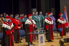 Głos zabrali również przewodniczący Parlamentu Studentów Rzeczypospolitej Polskiej Dominik Leżański oraz przewodniczący Samorządu Studenckiego naszej uczelni Michał Klimczyk, który w swoim wystąpieniu podkreślił m.in. zalety studiowania na naszej uczelni i zachęcał studentów pierwszego roku do działalności w organizacjach studenckich.