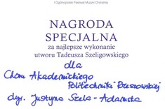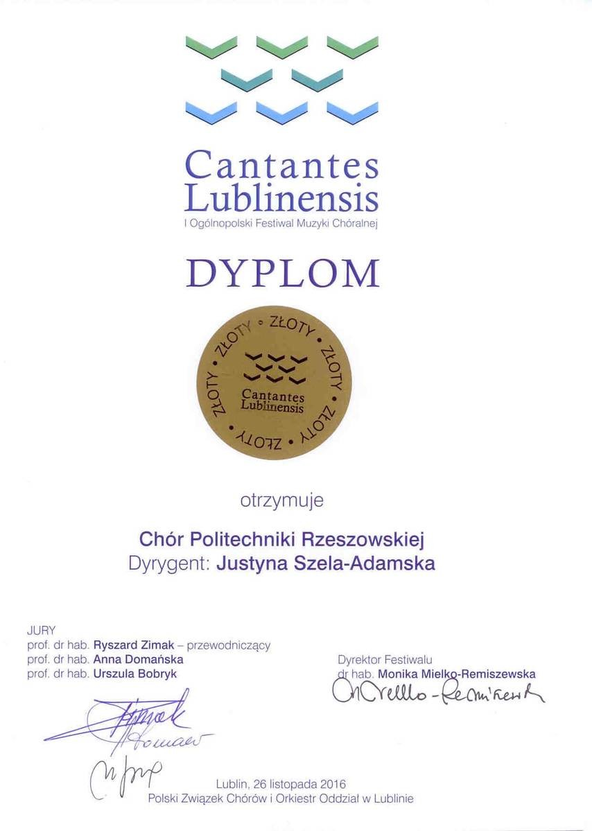 26 listopada br. Chór Akademicki Politechniki Rzeszowskiej zdobył Złoty Dyplom oraz Nagrodę Specjalną w I Ogólnopolskim Festiwalu Muzyki Chóralnej Cantantes Lublinensis.